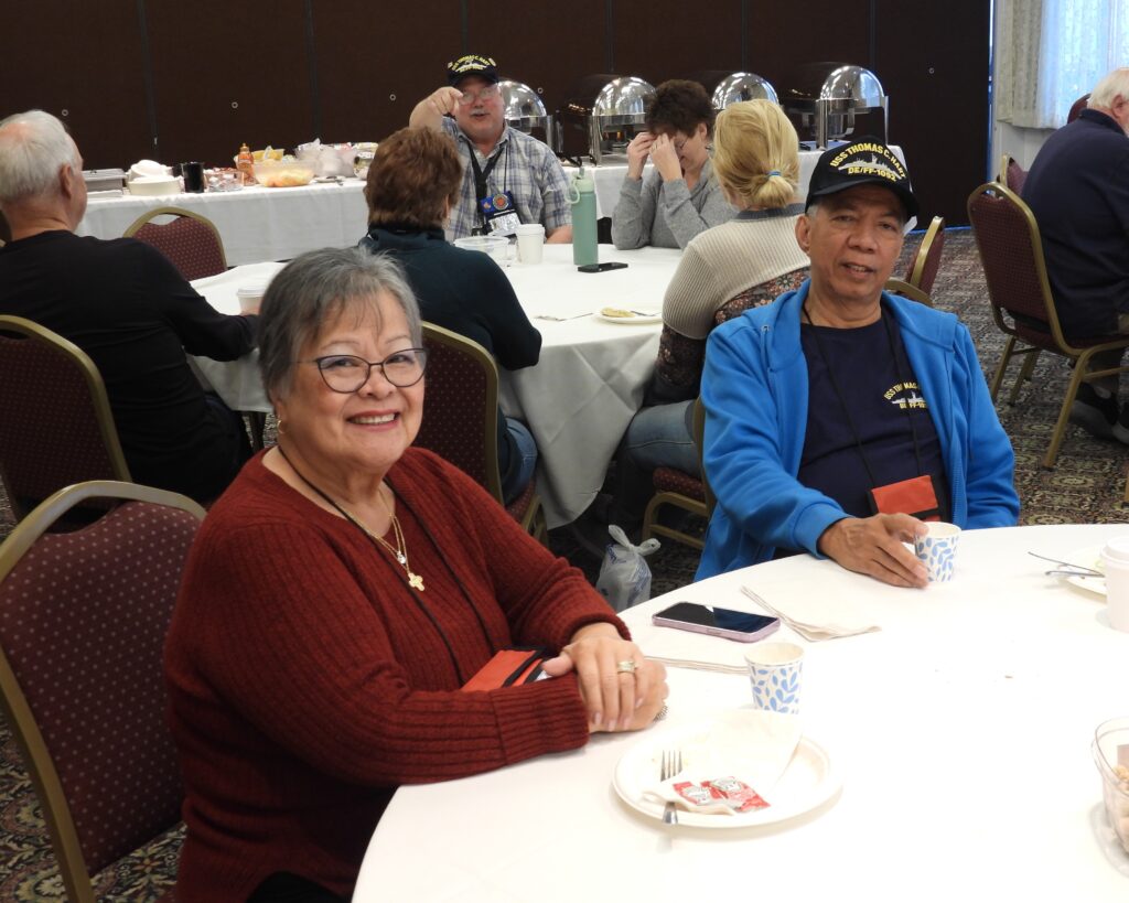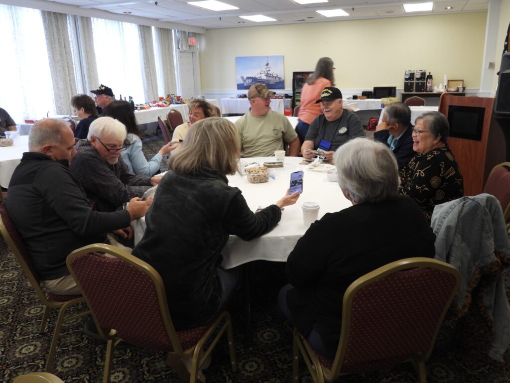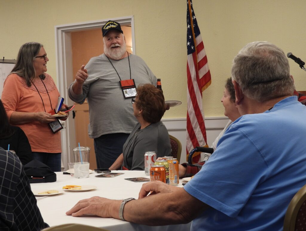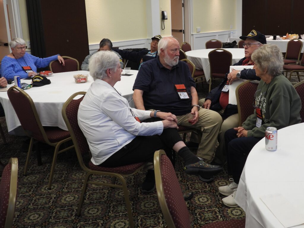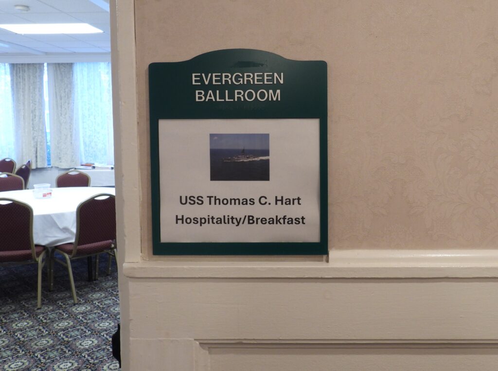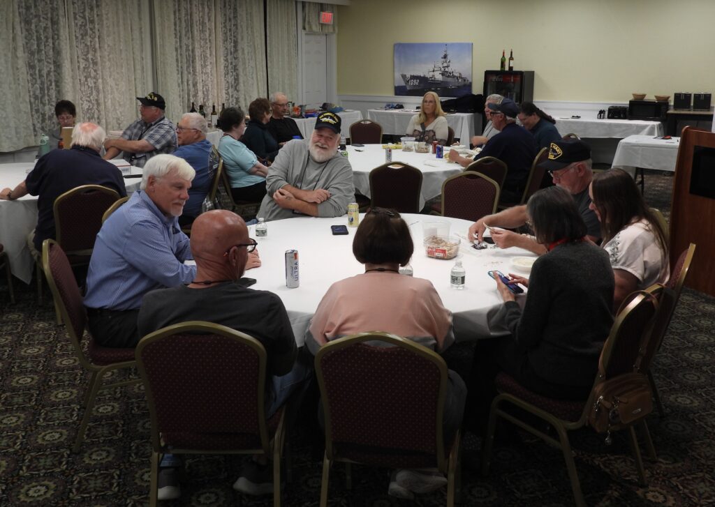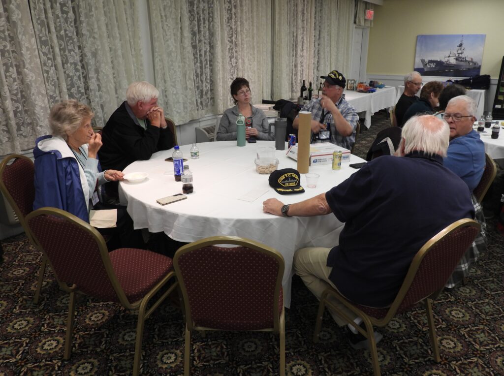 As with most of our Reunions, the hub of activity and social interaction occurs in the Hospitality Room. Our hotel the Merry Manor provided a spacious room, lots of tables and a cooler for beverages. You could pretty much go to the Hospitality Room at any hour and likely find folks hanging out, reconnecting and renewing friendships, swapping sea stories and simply relaxing.